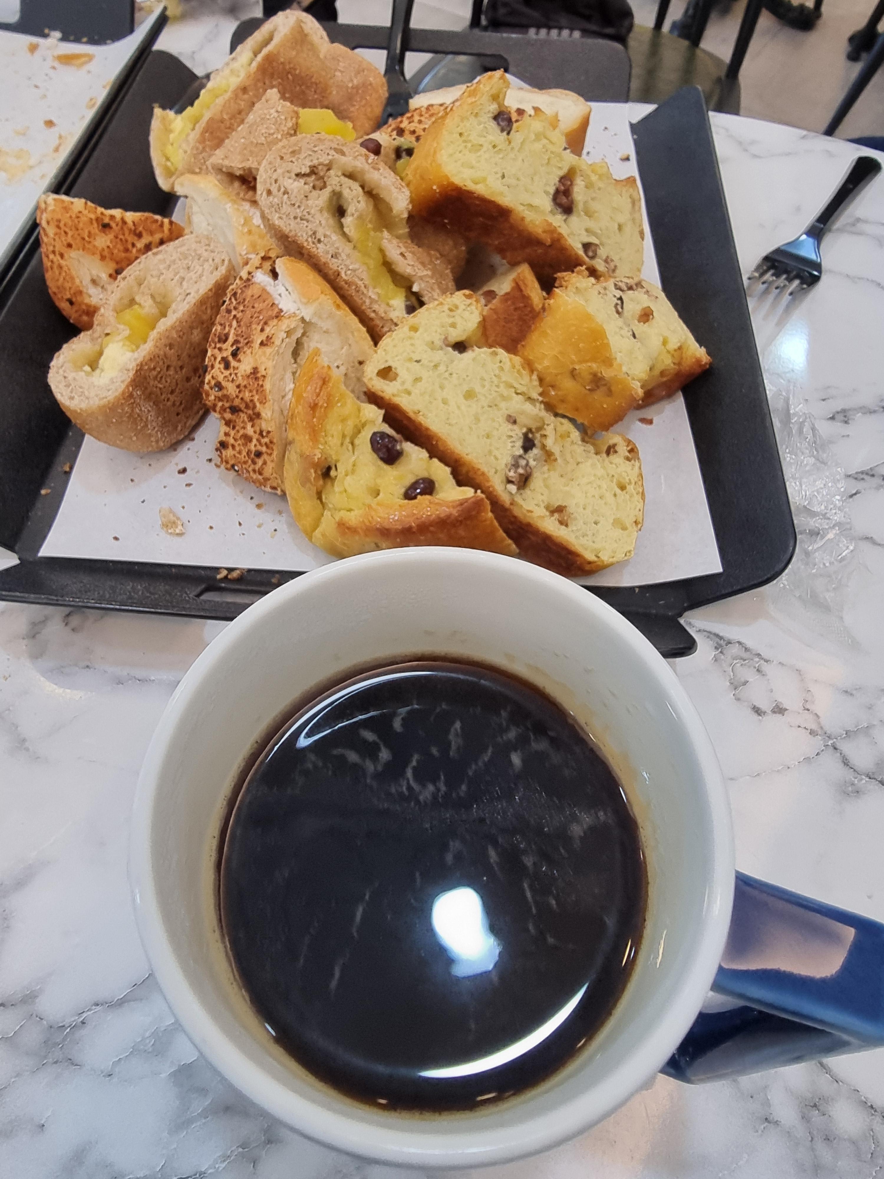 스산한 봄을 시샘하는 날씨 일요일 아침 혼자 파묘 조조 영화관람중 형님 호출로 마산 가포 짬뽕전문점 뽕네프에서 짬뽕 한그릇하고 산골짜기 숨은 맛집 빵내음에서 커피와 빵으로 여유있는 주말을 보낸다.